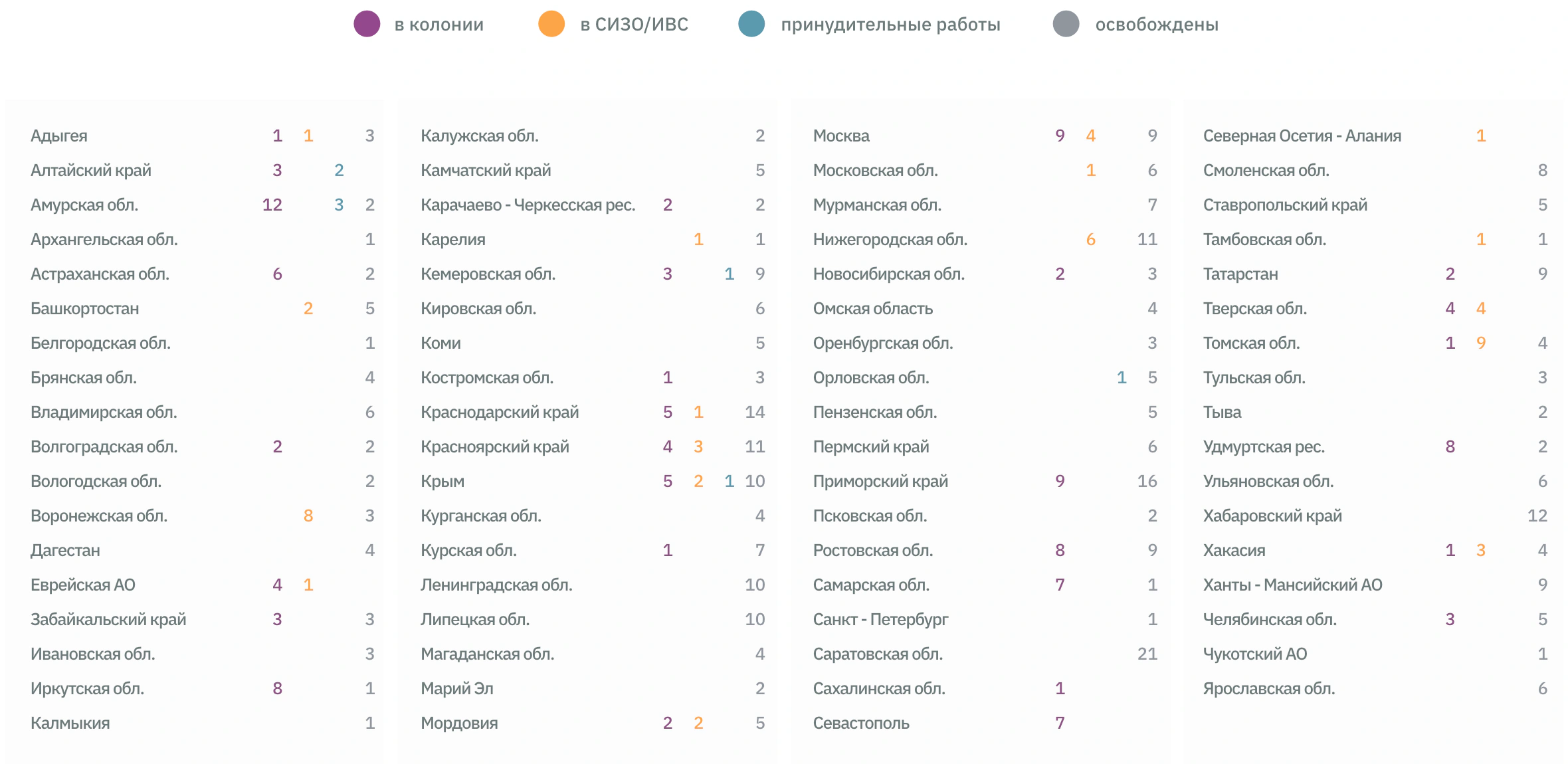 Алтайский край: Петров Сергей Башкортостан: Бастаев Сергей, Джавадова Альфия, Гареева Мария, Губеев Андрей, Тазыров Руслан, Тазырова Роза Крым: Мороз Анна, Привалова Галина Кемеровская область: Шишкина Ирина Красноярский край: Вакарев Александр, Вакарев Захар, Стариков Иван