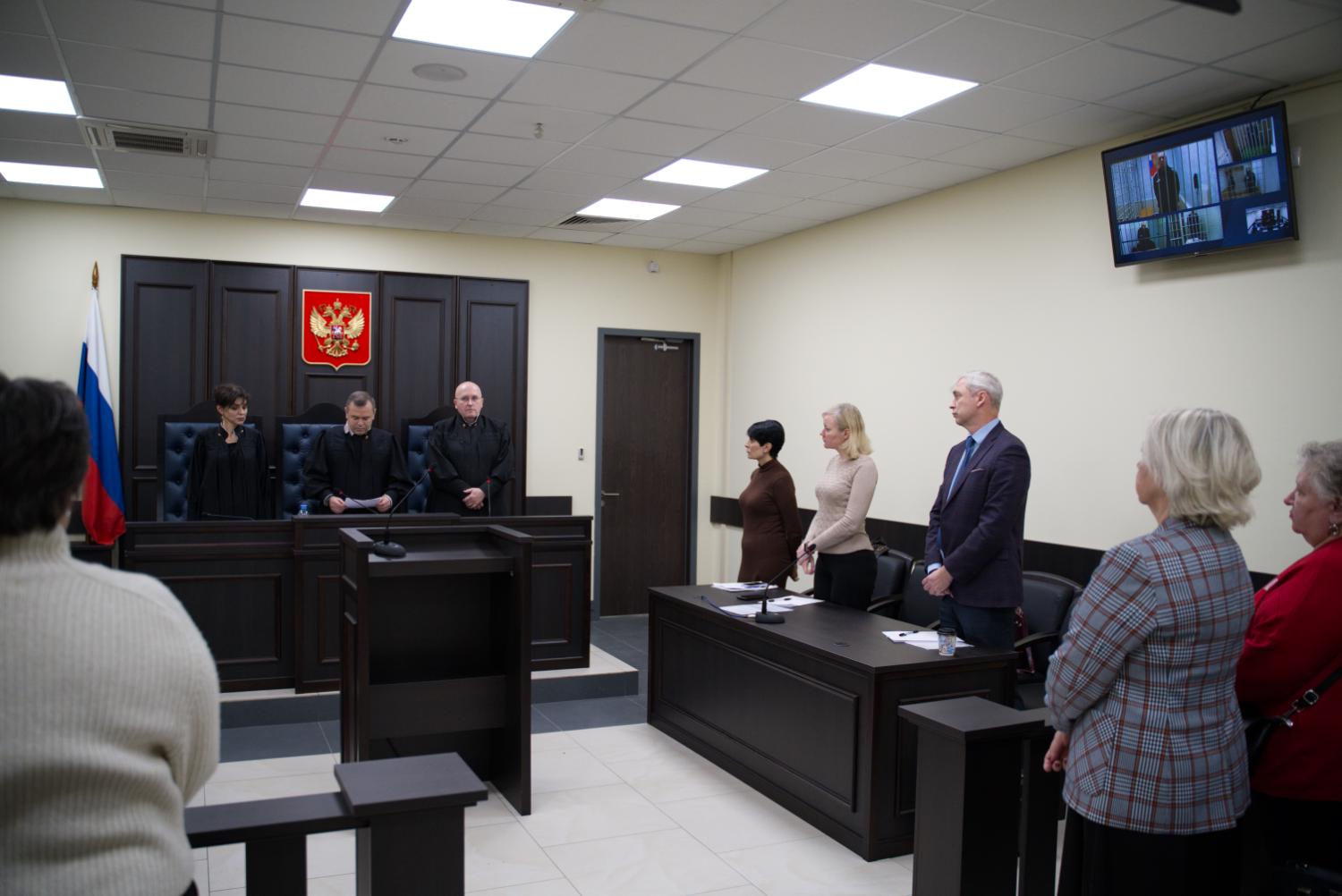 В зале присутствуют около 30 слушателей, которые пришли поддержать осужденных и их семьи.