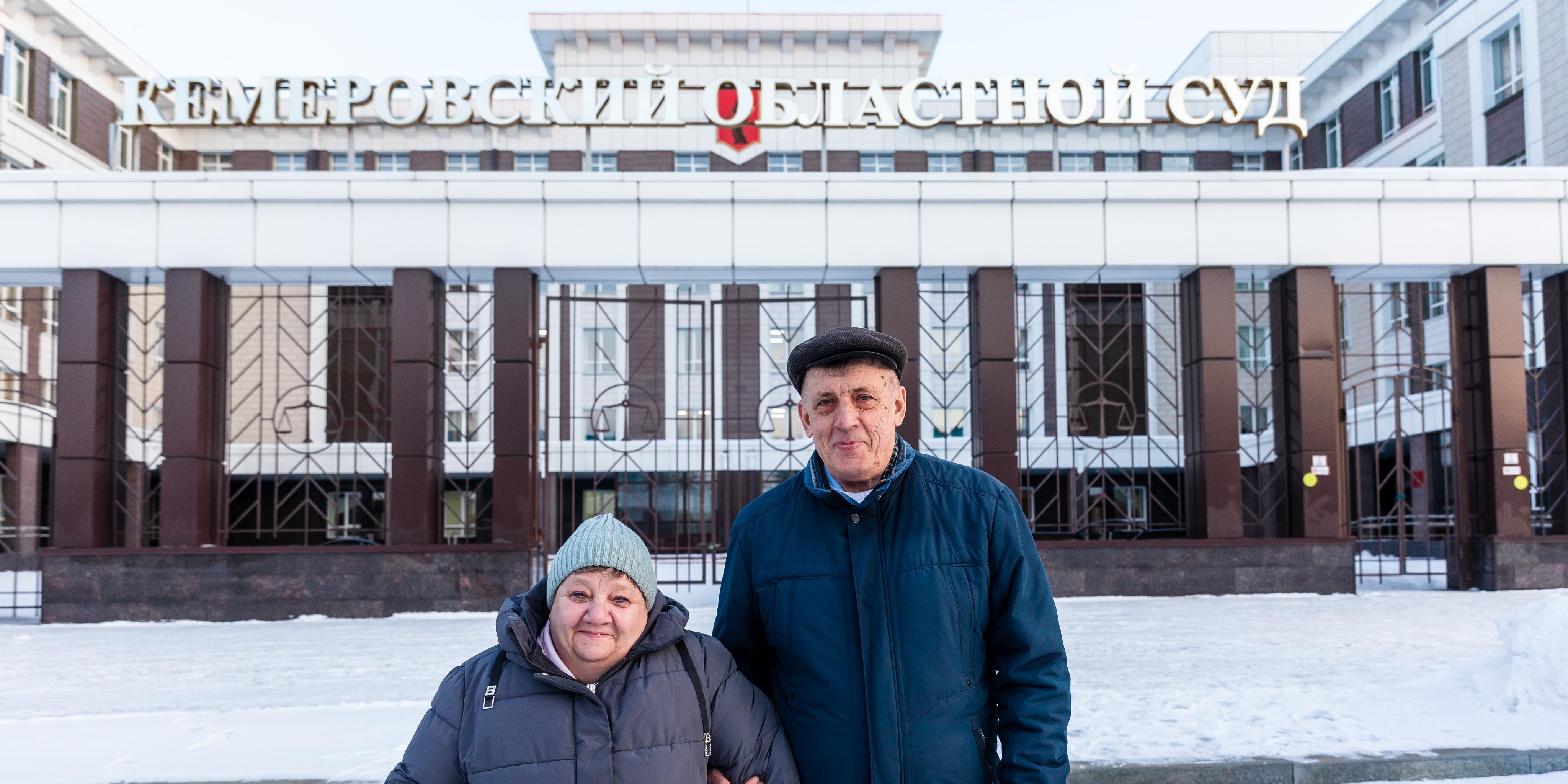 Pavel Brilkov mit seiner Frau am Tag des Berufungsverfahrens in der Nähe des Bezirksgerichts Kemerowo