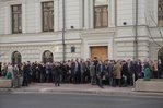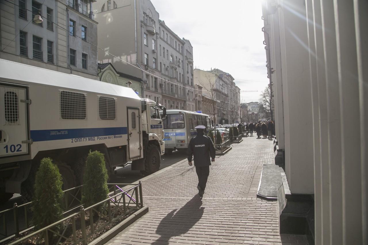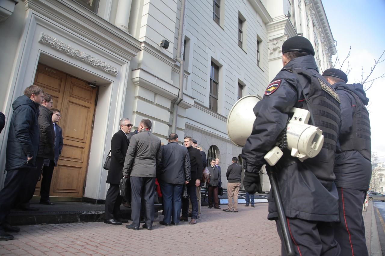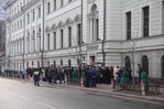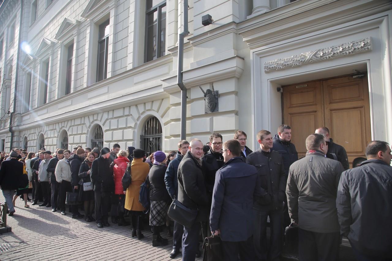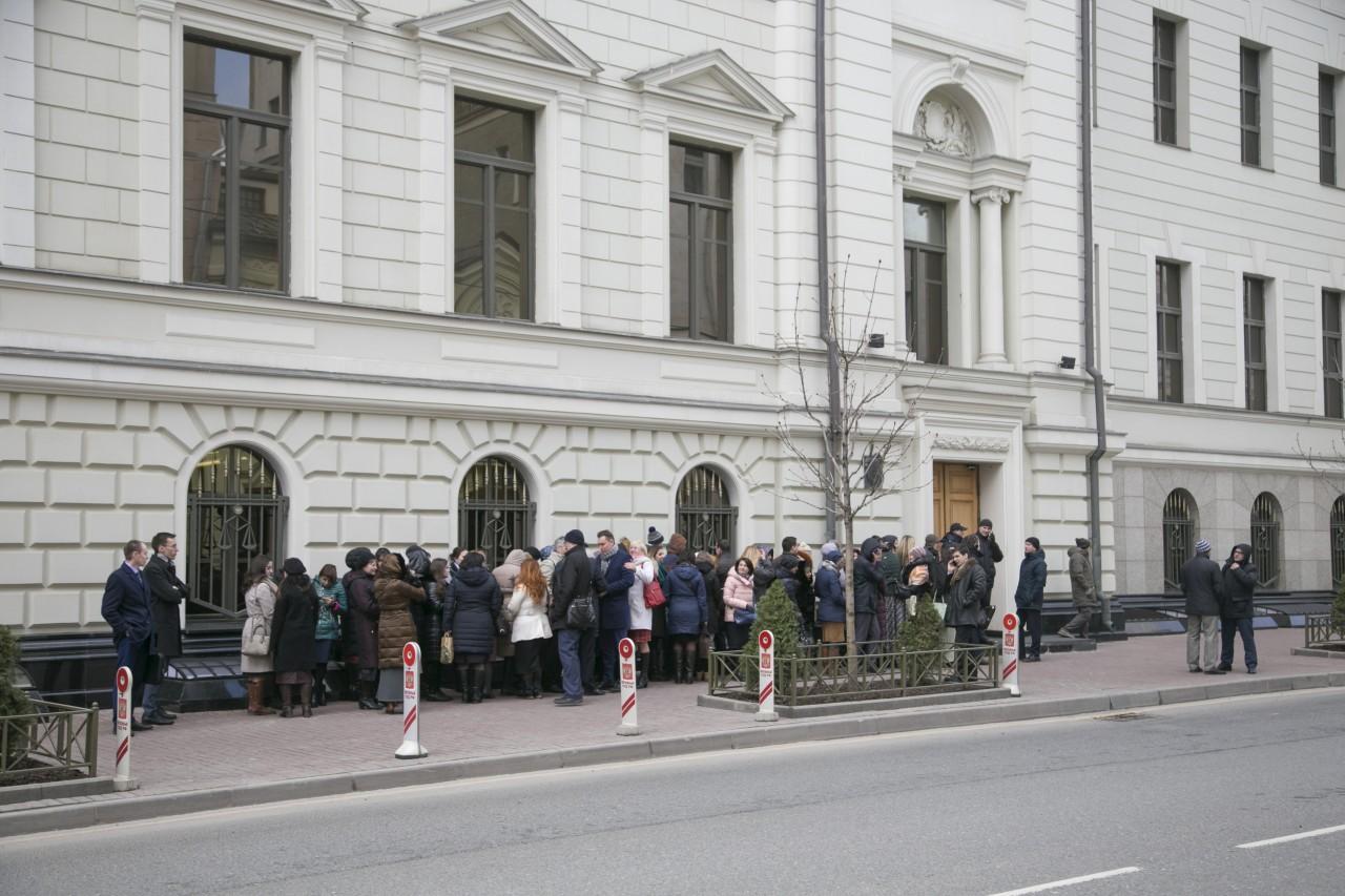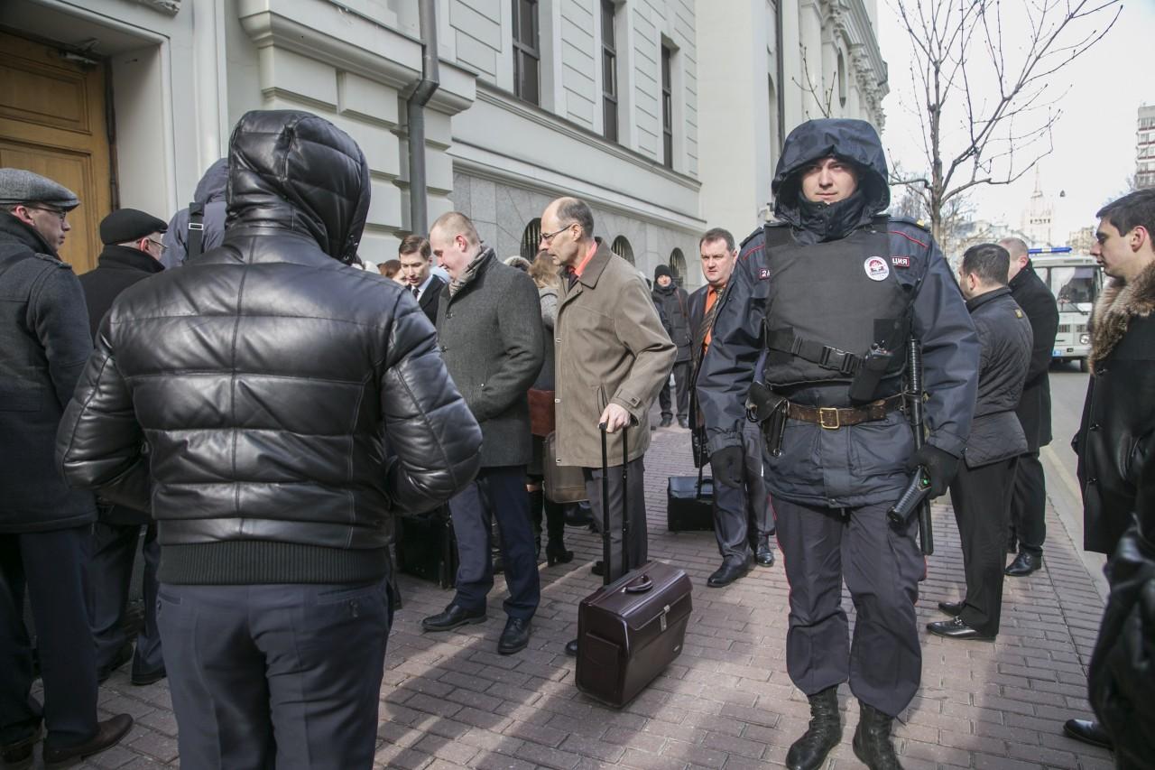 | 9:00 | La façade du bâtiment de la Cour suprême est plus bondée que jamais. La file d’attente a commencé à se former la nuit. Beaucoup spécialement venus de différentes villes de Russie. Comme il fait froid à Moscou, la plupart sont habillés en hiver. De temps en temps, quelqu’un apportait du café et des tartes pour ceux qui faisaient la queue. Personnel La police travaille de manière professionnelle et cohérente pour assurer la sécurité des personnes impliquées dans le procès.