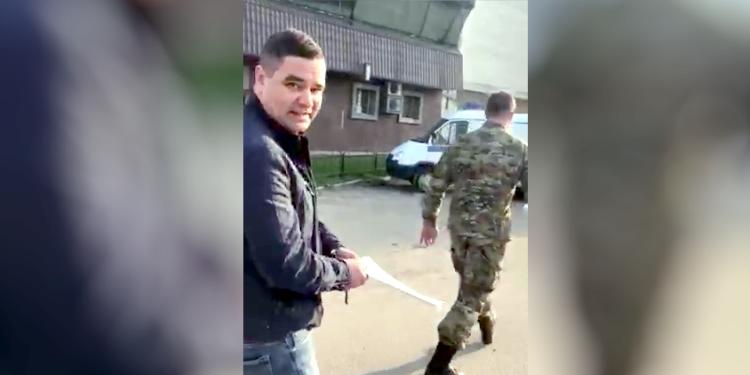 Photo : Valery Shalev menotté. Smolensk (avril 2019)