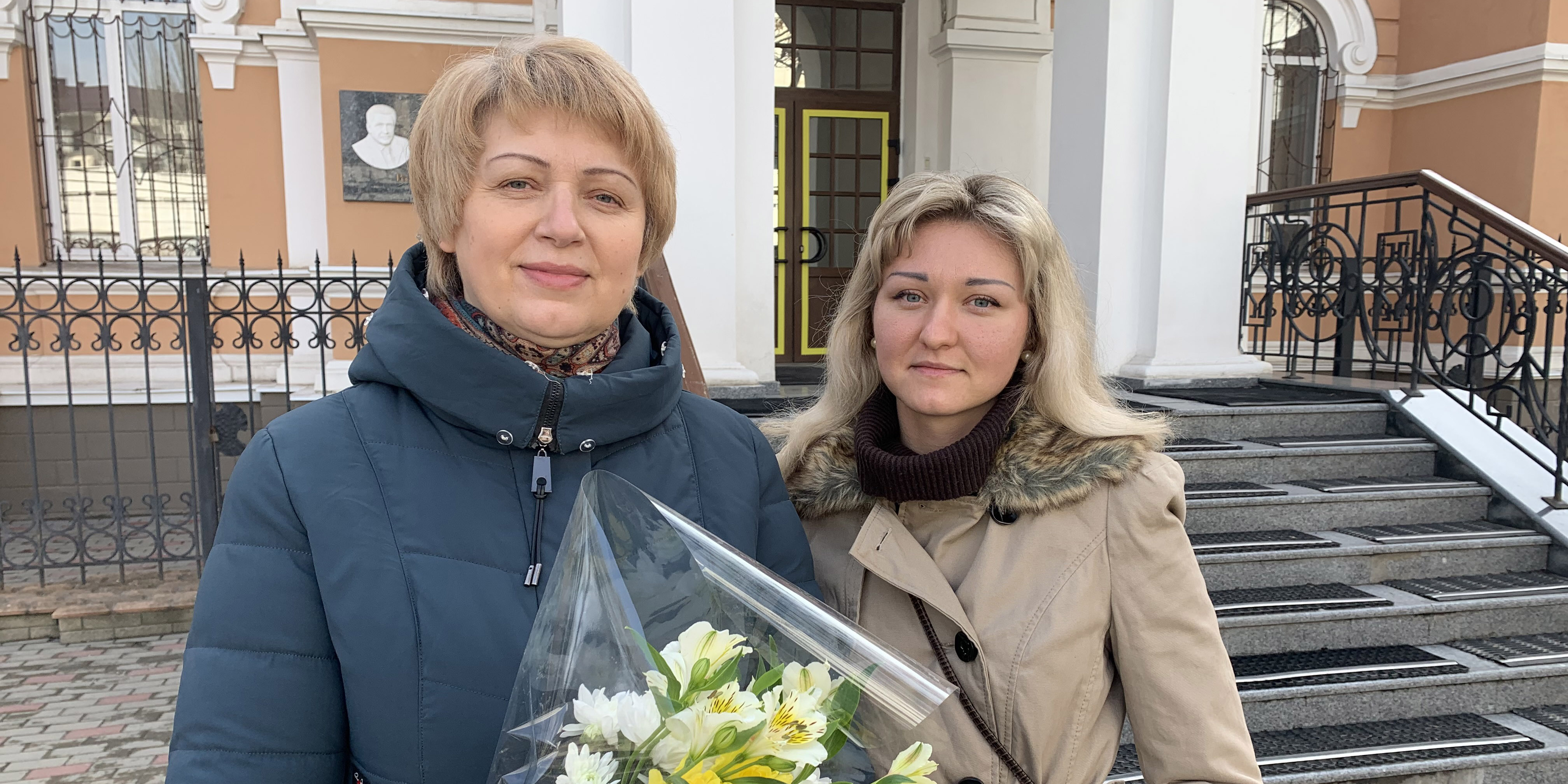 사진: 2021년 3월 로스토프나도누 지방 법원 건물 근처에서 딸 예브게니아와 함께 있는 갈리나 파르코바