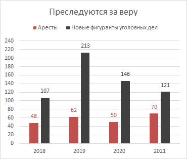 2021년 한 해 동안 법원 판결 건수, 형량의 심각성, 교정 노동 수용소와 재판 전 구치소에 수감된 신자 수 등 여러 반(反)기록이 달성됐다. 그러나 연말은 러시아 연방 대법원 전원회의에서 신자들을 변호하는 판결과 첫 번째 무죄 판결로 특징지어졌다.