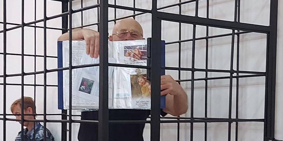 법정에서 발레리 바일로(Valeriy Baylo)는 수감 중에 받은 편지를 보여주고 있다