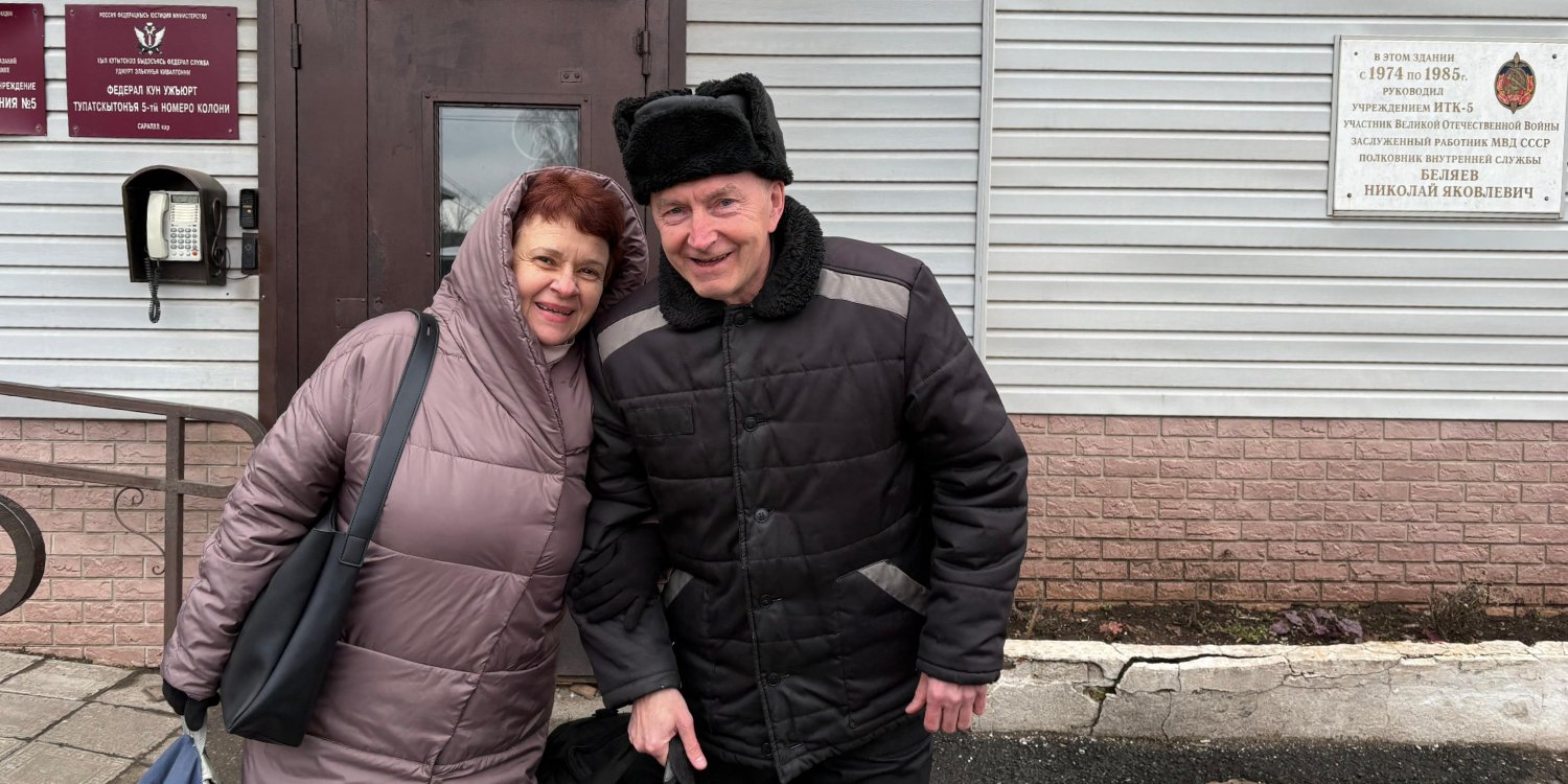 Валерий Рогозин, третий из осужденных волгоградских Свидетелей Иеговы, вышел из колонии в Удмуртии 7 апреля 2026 года. Многолетняя разлука с женой Мариной осталась в прошлом — супруги в браке более 40 лет.