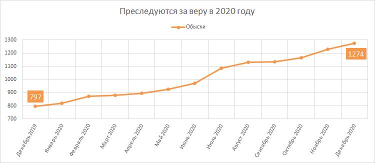 Quantas buscas foram realizadas nas casas das Testemunhas de Jeová? Desde que a proibição do registro de Testemunhas de Jeová entrou em vigor, um total de 1.274 buscas foram realizadas em suas casas. Destes, 477 buscas foram realizadas em 2020. (Em 2019, o número foi de 489.) A busca é uma restrição significativa do direito constitucional de uma pessoa à liberdade e à segurança da pessoa, à privacidade, aos segredos pessoais e familiares, à honra e ao bom nome.