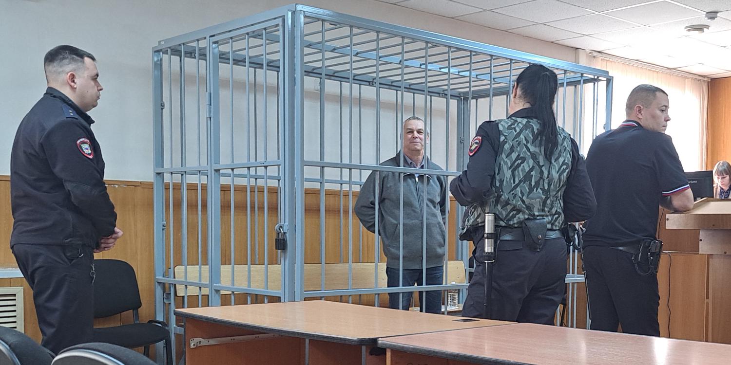 Oleg Postnikov no dia em que o veredito foi anunciado. O crente foi mantido em uma jaula durante as audiências. 12 de fevereiro de 2026.